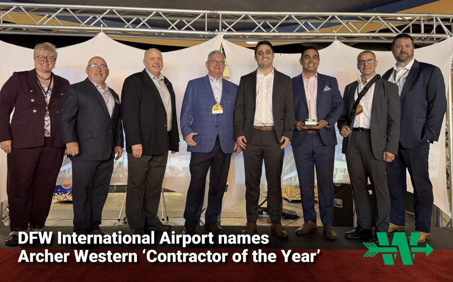 Archer Western has been named Contractor of the Year by Dallas Fort Worth (DFW) International Airport for its work on the International Parkway Terminal B Flyover Bridge. The award recognizes Archer Western’s exceptional performance and early re-opening of the first Terminal B 90-day detour, a critical milestone within the International Parkway Project.